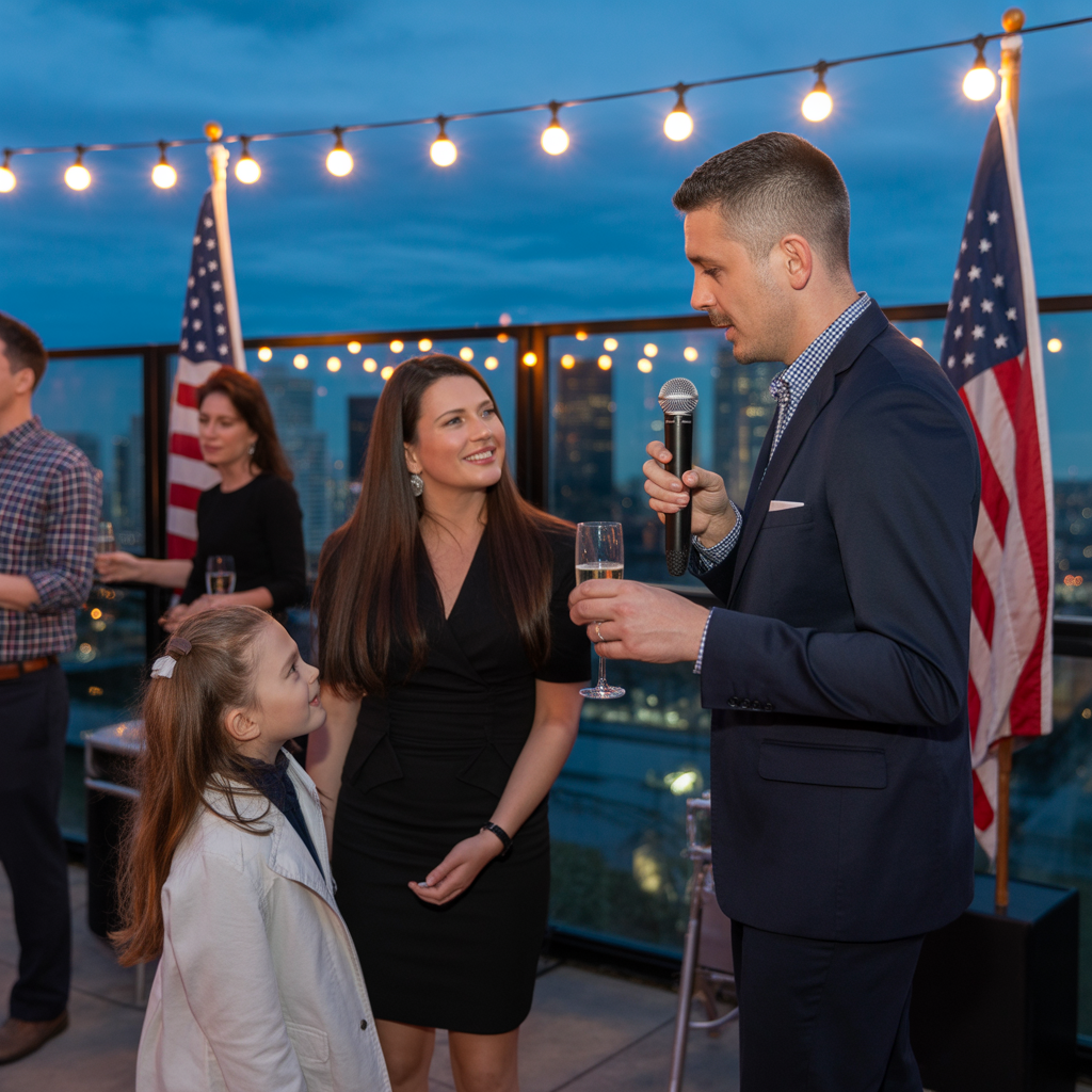 I stood near the edge of the rooftop, my champagne untouched, my hand resting lightly on my daughter’s shoulder as she leaned against me, bored and blinking at the lights. Her dress was velvet, deep green, the kind of color that makes a child look older in photos. She kept tugging at the sleeve because she hated anything that felt tight.