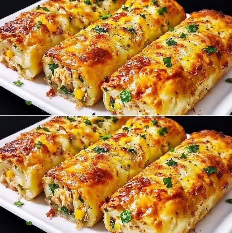 “Simply Divine Dinner!” — a baked potato roll with chicken and vegetables: